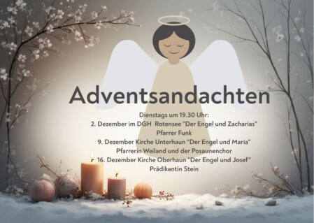 - 7. Dezember um 10.30 Uhr Gottesdienst zur Einführung des neuen und zur Verabschiedung des alten Kirchenvorstandes mit Pfarrer Thomas Funk und Pfarrerin Doris Weiland